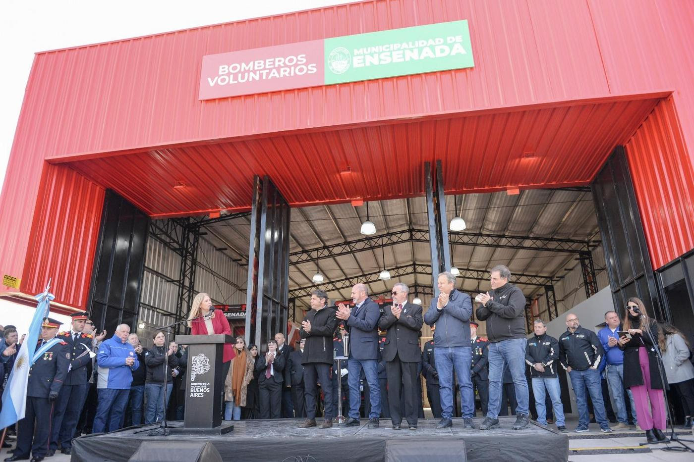 Verónica Magario participó este jueves junto al gobernador de la provincia de Buenos Aires, Axel Kicillof y el intendente de Ensenada, Mario Secco, de la inauguración del nuevo cuartel de Bomberos Voluntarios “Sargento 1° Cirilo Pergolesi” en la localidad de Punta Lara, destinado a mejorar la cobertura de vecinos y vecinas de los barrios Piria, Gutiérrez, Villa Rubén Sito e Isla Santiago.