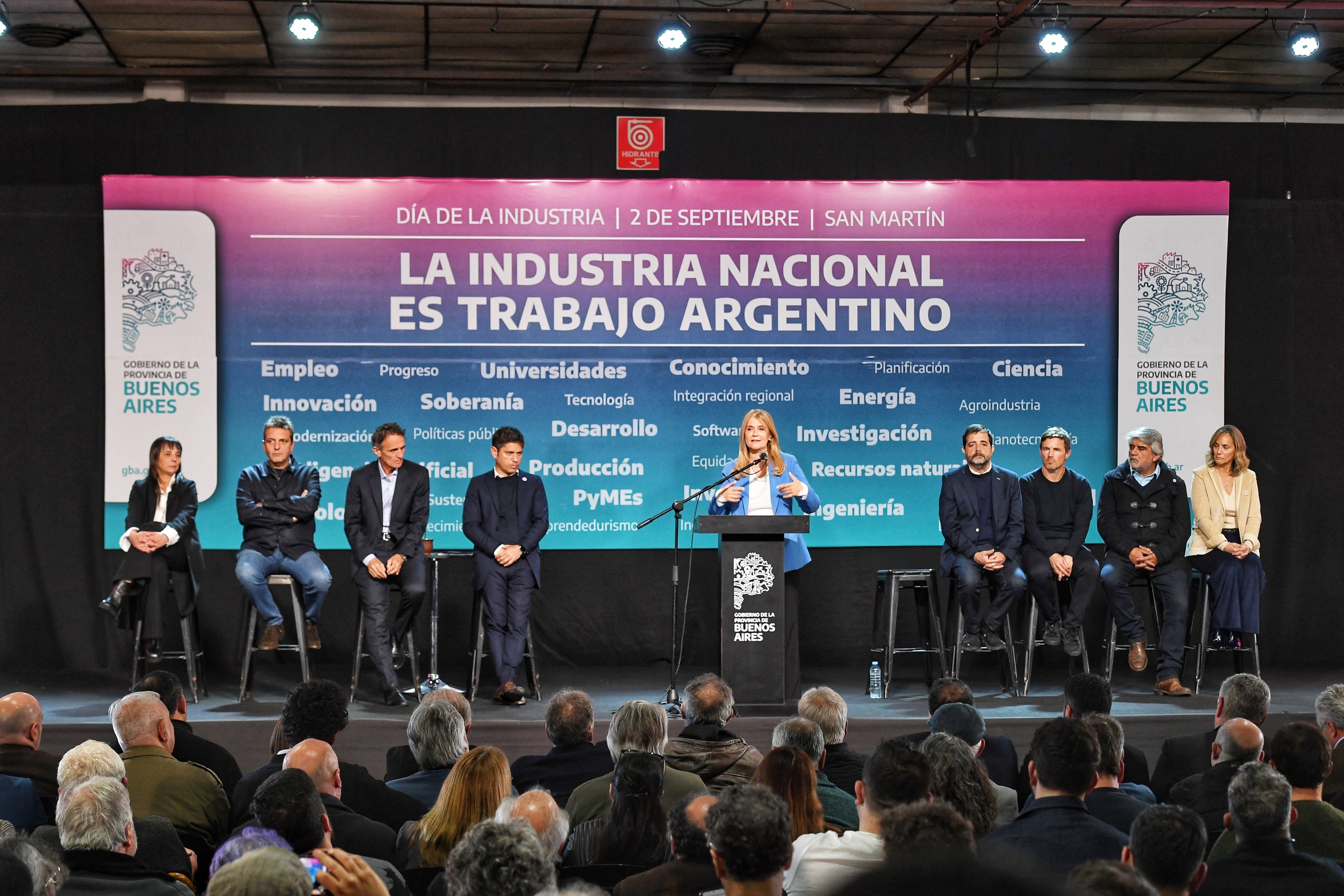 Verónica Magario participó junto al gobernador bonaerense, Axel Kicillof, y el ministro de Infraestructura y candidato a senador provincial por la Primera Sección electoral, Gabriel Katopodis, del acto por el aniversario del Día de la Industria Argentina.