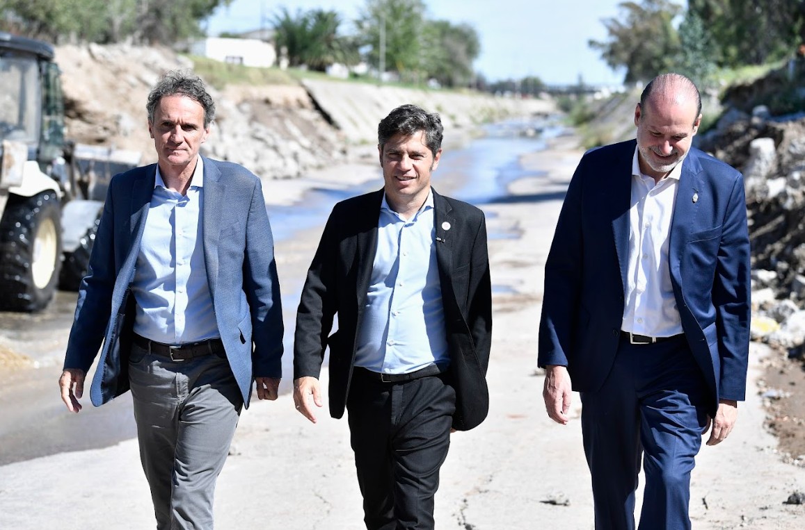 Durante la jornada, Kicillof y Katopodis recorrieron la obra del puente de la calle Pampa Central, que con una inversión de $2.976 millones contempla la demolición del antiguo puente vehicular y su pasarela peatonal, y la construcción de la nueva infraestructura. Los trabajos forman parte del proyecto integral de refuncionalización del Canal Maldonado, que permitirá triplicar su caudal original para mejorar la seguridad hídrica en la zona y transformarlo en un corredor urbano.