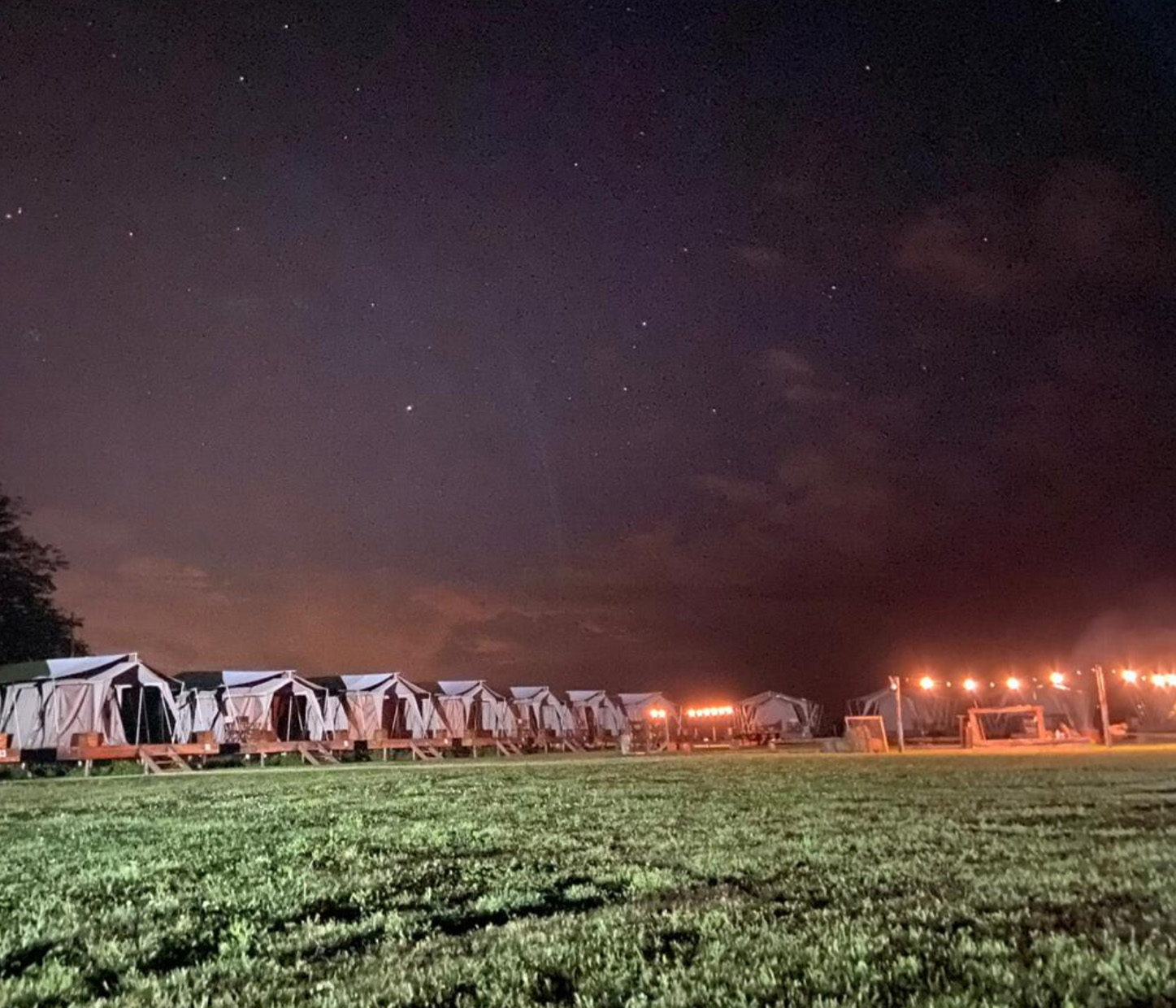 El campamento dispone de 21 carpas africanas construidas sobre decks elevados. Cada una de ellas tiene alfombra, camas con ropa, toallas y baño privado. El área se completa con carpón comedor y fogón. Es una experiencia novedosa y original de alojamiento para una aventura cerca de las grandes aglomeraciones.