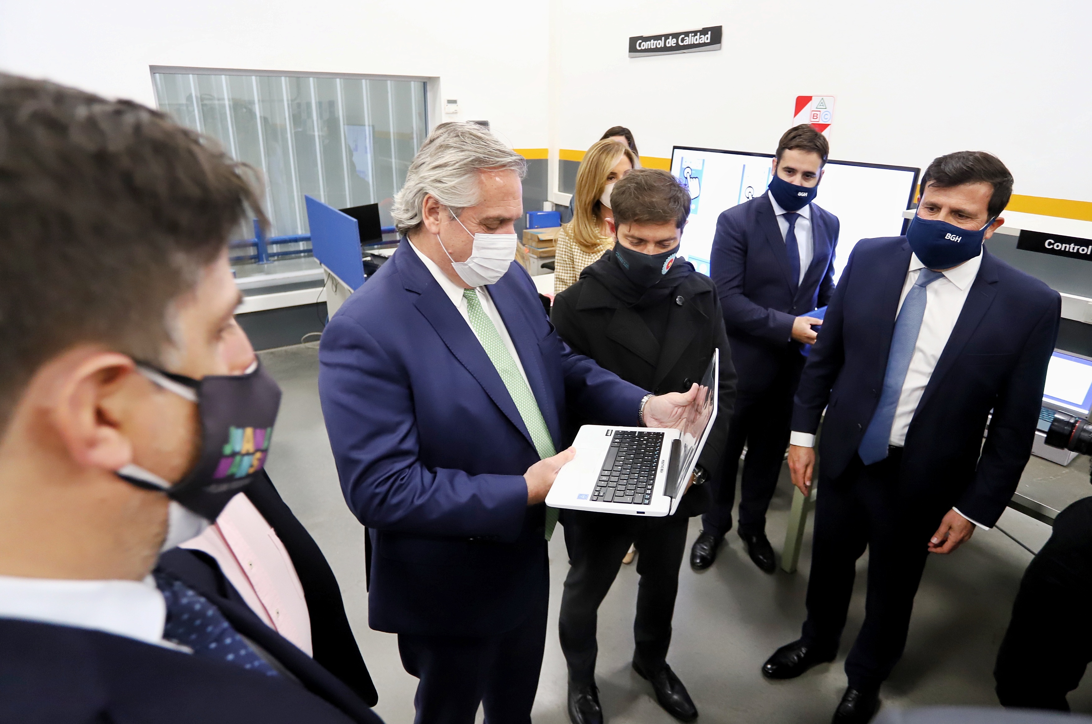 El acto se llevó a cabo en las instalaciones de la firma BGH, una de las compañías que estarán a cargo de la producción de las computadoras. Estuvieron presentes el ministro de Educación de la Nación, Nicolás Trotta; la directora general de Cultura y Educación bonaerense, Agustina Vila; el intendente local, Alejandro Granados; el CEO de la empresa, Marcelo Girotti, y el director de la firma Diego Teubal.