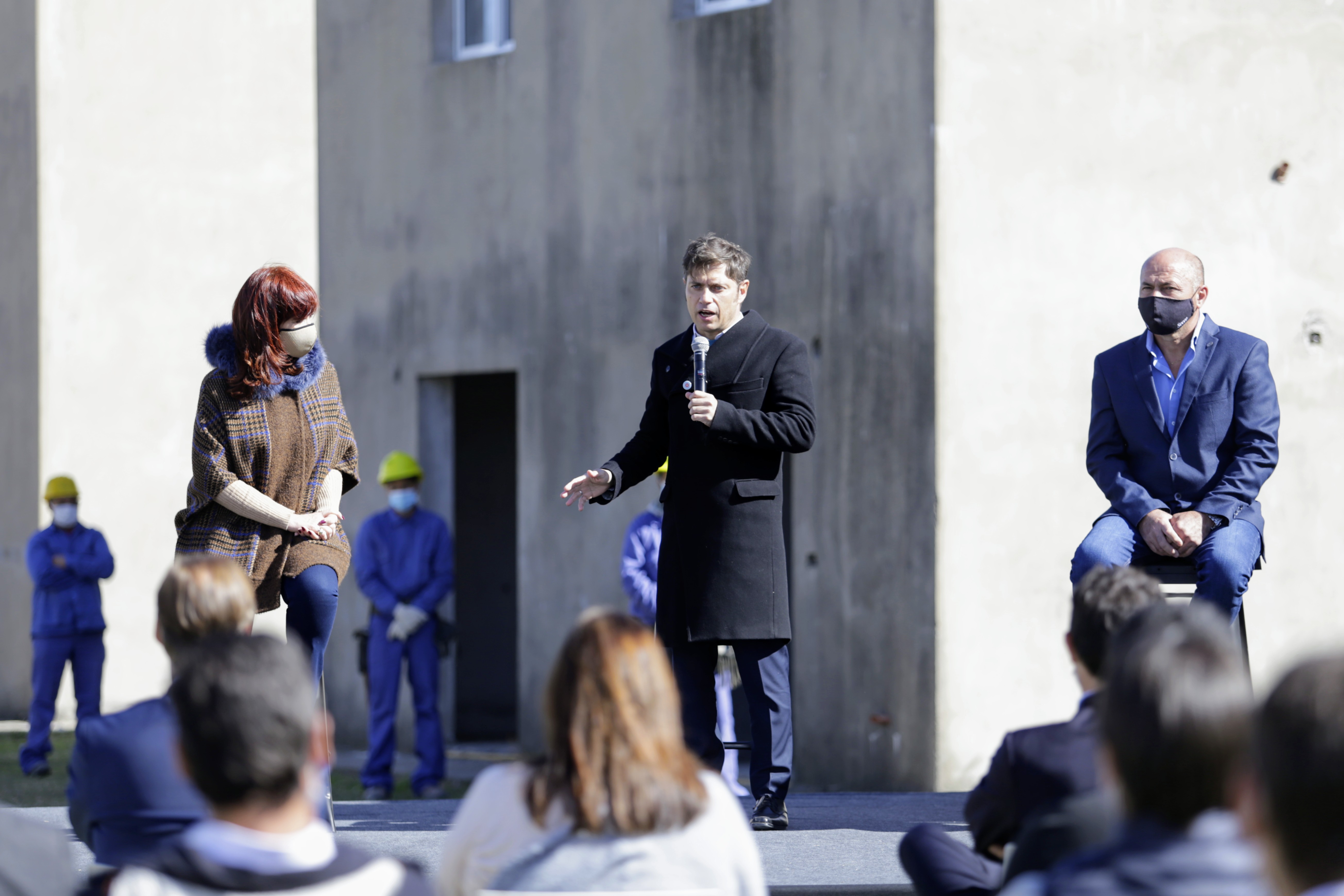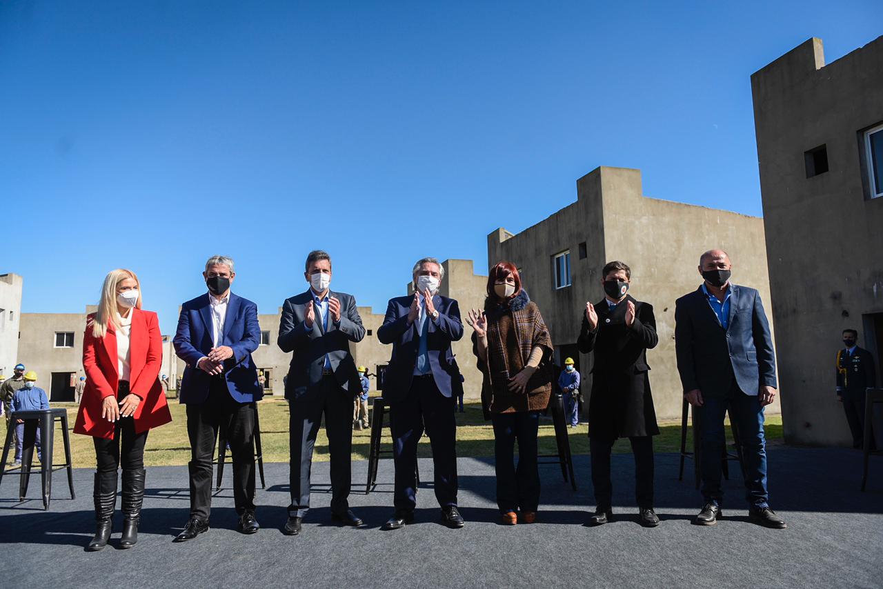 El mandatario estuvo acompañado por la vicepresidenta, Cristina Fernández de Kirchner; el titular de la Cámara de Diputados, Sergio Massa; los gobernadores de las provincias de Buenos Aires, Axel Kicillof; y de Entre Ríos, Gustavo Bordet; los ministros de Desarrollo Territorial y Hábitat, Jorge Ferraresi; y de Obras Públicas, Gabriel Katopodis; la vicegobernadora provincial, Verónica Magario; el intendente local, Mario Secco; y los secretarios general de la Presidencia, Julio Vitobello; y de Comunicación y Prensa, Juan Pablo Biondi, entre otras autoridades.