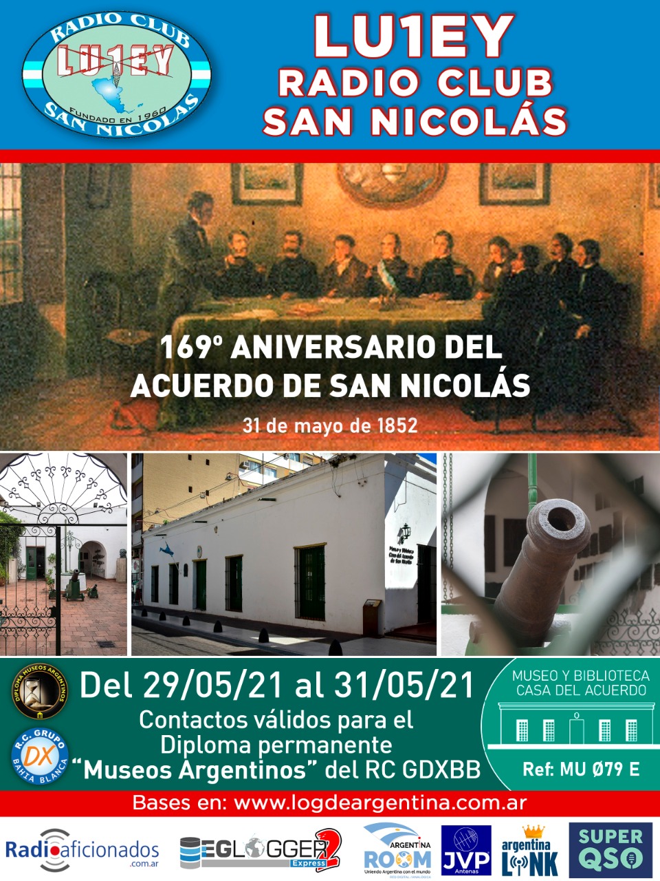 La “entrega de un Certificado Especial” es una actividad habitual y de gran importancia para el mundo de la radioafición dado que convoca a gran parte de los radioaficionados mediante una participación activa, comunicando en simultáneo y compartiendo información precisa sobre el motivo del evento. En esta ocasión y con motivo de la celebración del 169° Aniversario del Acuerdo de San Nicolás, durante tres jornadas consecutivas el Radio Club San Nicolás LU1EY a través de sus miembros se encontrará transmitiendo por radio en vivo desde el Radio Club y desde la Casa del Acuerdo de San Nicolás, haciendo contacto y comunicando con radioaficionados de todo el país y países limítrofes.