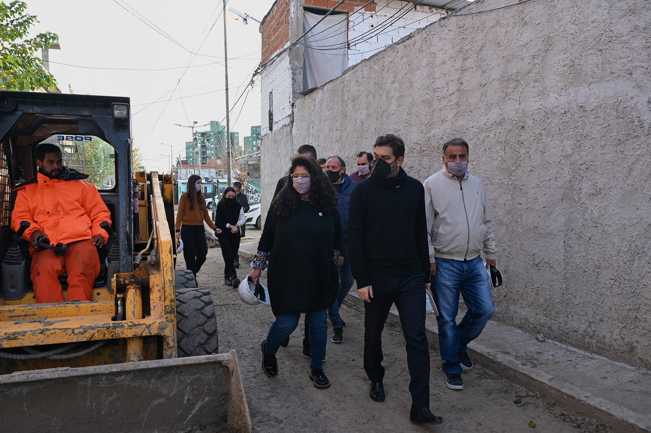 Durante la jornada, los funcionarios verificaron el avance de la ejecución del tendido de las redes de agua y cloacas con las respectivas conexiones domiciliarias hasta la línea municipal, la construcción de desagües pluviales, la mejora de los accesos con pavimento intertrabado, la iluminación y la puesta en valor de espacios públicos.