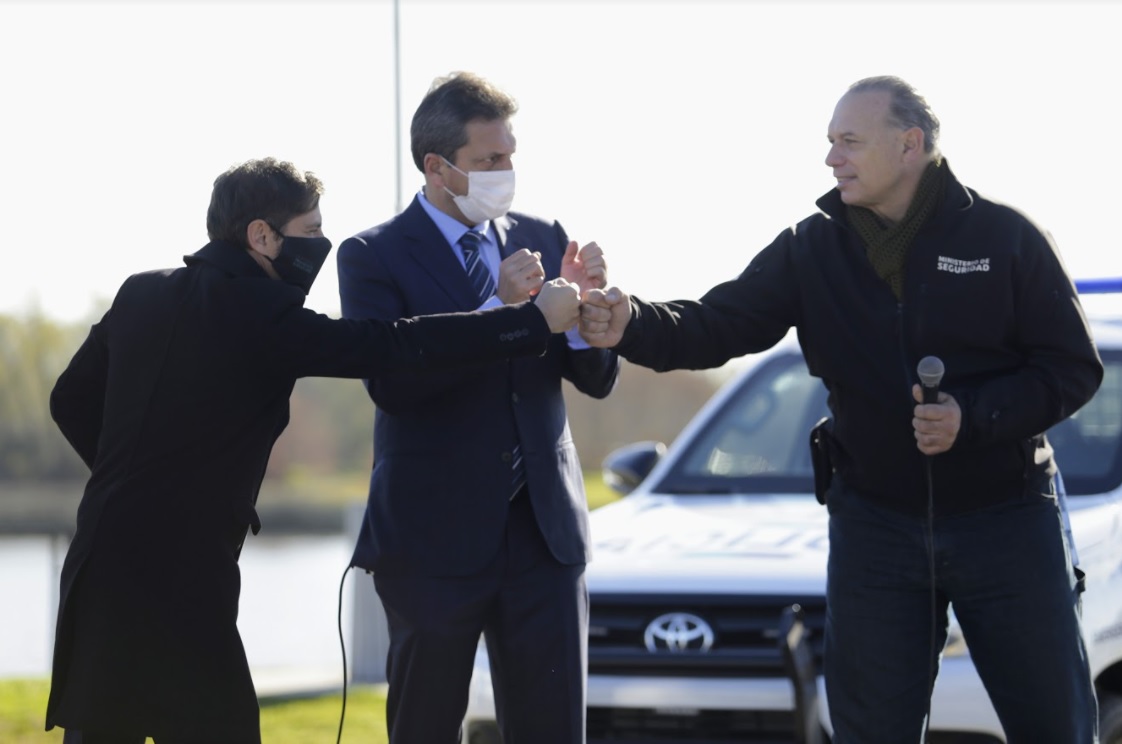 “Brindar seguridad es una responsabilidad que tenemos desde el Estado y que abordamos con el esfuerzo conjunto y articulado entre la Nación, la Provincia y los municipios”, sostuvo Massa y añadió: “Trabajamos para tener fuerzas profesionales y para brindar a la comunidad todos los recursos necesarios: móviles, cámaras y botones de pánico”. “Tomamos la decisión de resolver los problemas y responder ante una sociedad que, frente a la pandemia, pide certidumbre y cuidados”, dijo.