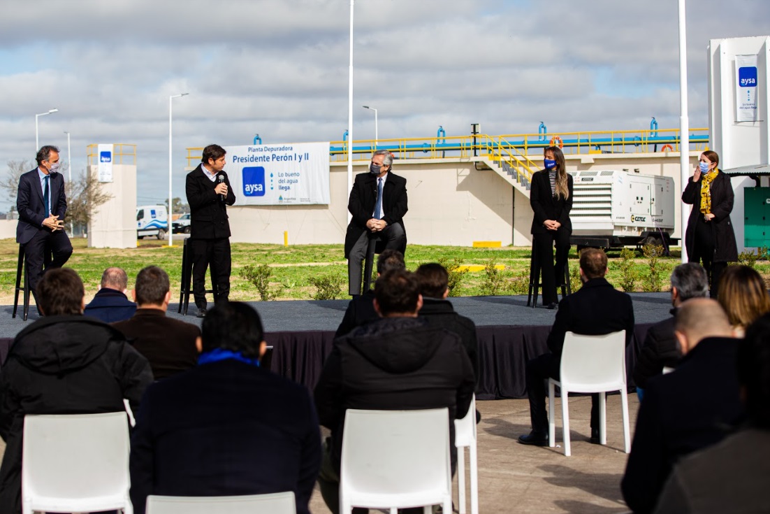 El Jefe de Estado estuvo acompañado por el gobernador de la provincia de Buenos Aires, Axel Kicillof; el ministro de Obras Públicas, Gabriel Katopodis; la presidenta de AySA, Malena Galmarini; y la intendenta local, Blanca Cantero. También asistió el titular de la Cámara de Diputados, Sergio Massa.