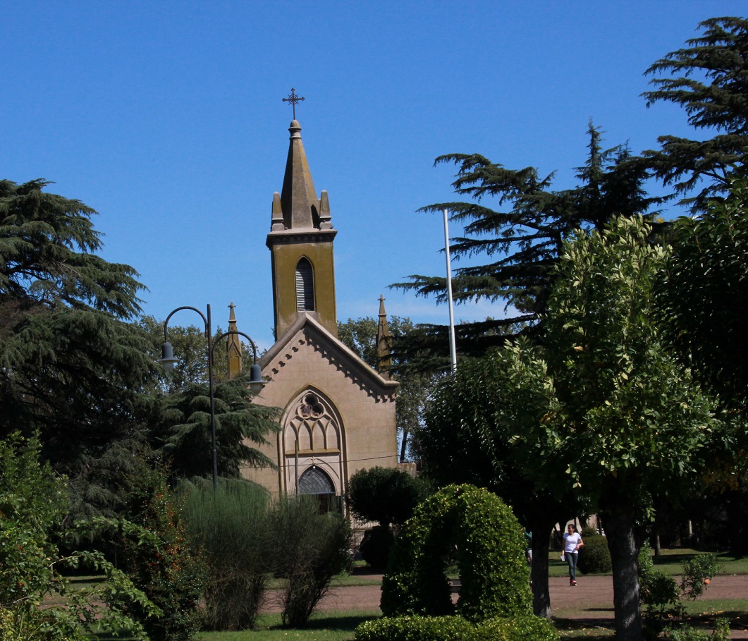 En el pueblo turístico de Indio Rico, a setenta kilómetros de Coronel Pringles, las mejores fotos se obtienen desde la torre de la iglesia Nuestra Señora del Carmen, a la que se sube luego de un paseo por su interior.