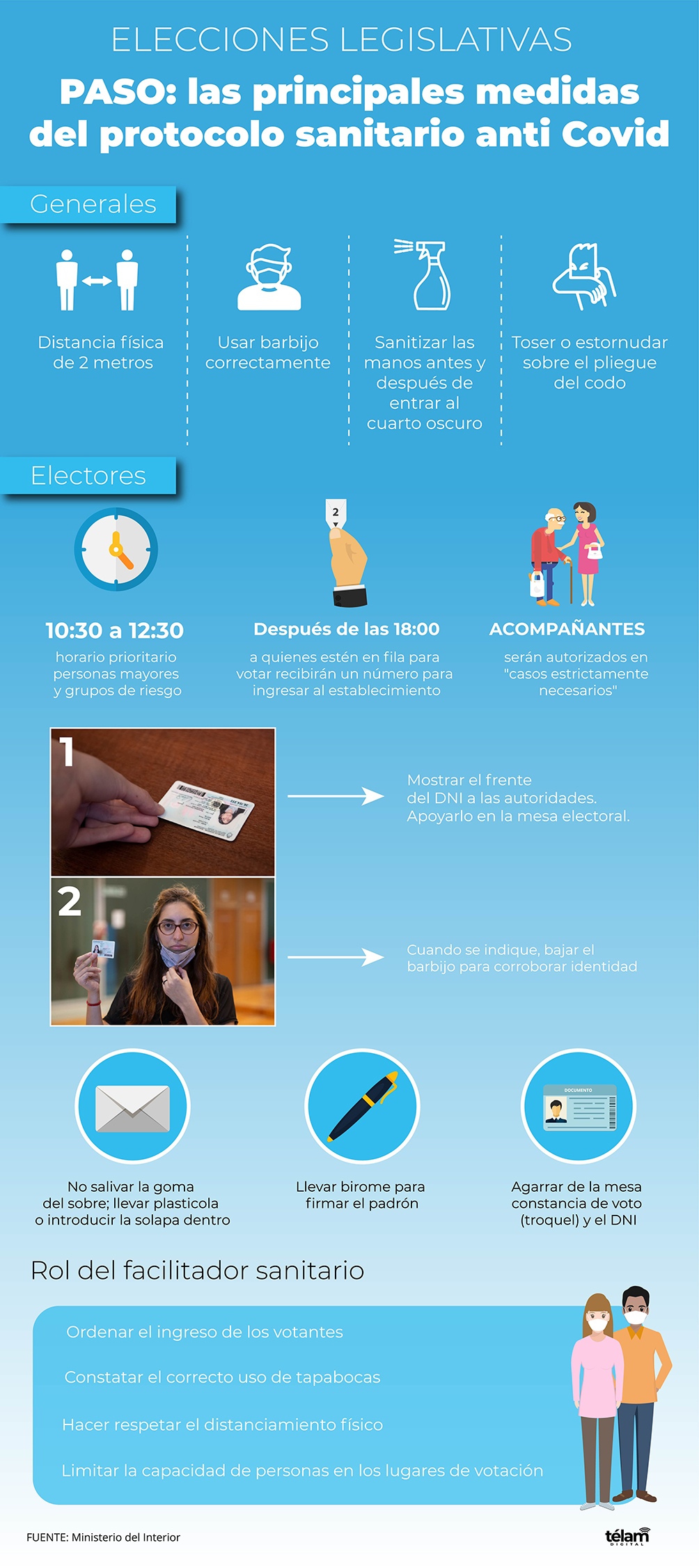 Las siguientes preguntas y respuestas refieren a las principales medidas y recomendaciones previstas en el Protocolo para evitar contagios de coronavirus el día de la votación: