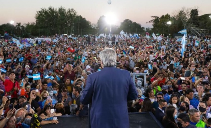 El presidente Alberto Fernández aseguró hoy que la Argentina "está avanzando con producción y trabajo", al encabezar junto a la vicepresidenta Cristina Fernández de Kirchner el acto de cierre de campaña del Frente de Todos (FdT) en la ciudad bonaerense de Merlo para las elecciones legislativas del domingo próximo.