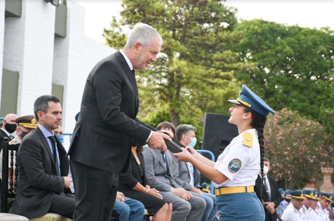 Luego recibieron premios los cadetes que lograron los mejores promedios y todos recepcionaron sus diplomas, para finalizar el acto con las palabras del director de la Escuela de Cadetes, Antonio Mogica y el ministro Julio Alak