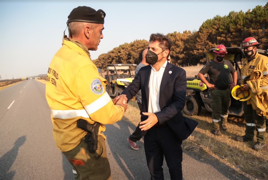 “Cuando asumimos había un solo helicóptero propio y hoy tenemos 7 helicópteros funcionando y un entrenamiento específico que les permite atender estas emergencias”, detalló Kicillof y resaltó que “la respuesta ante estas situaciones necesita previsión, planificación e inversión, el trabajo técnico y el instrumental específico”. “Sin un Estado presente hoy solo veríamos cenizas en este lugar”, ratificó.