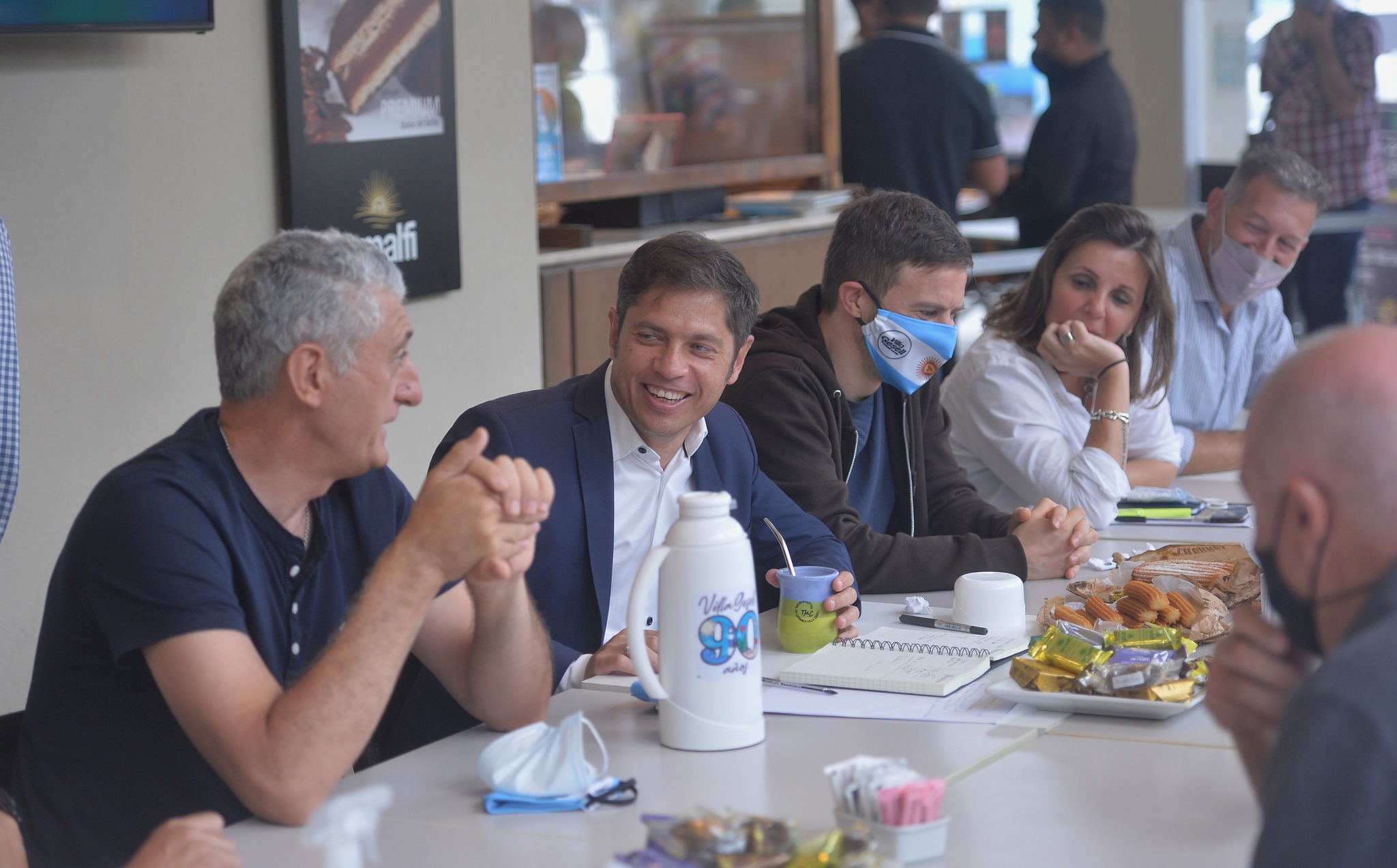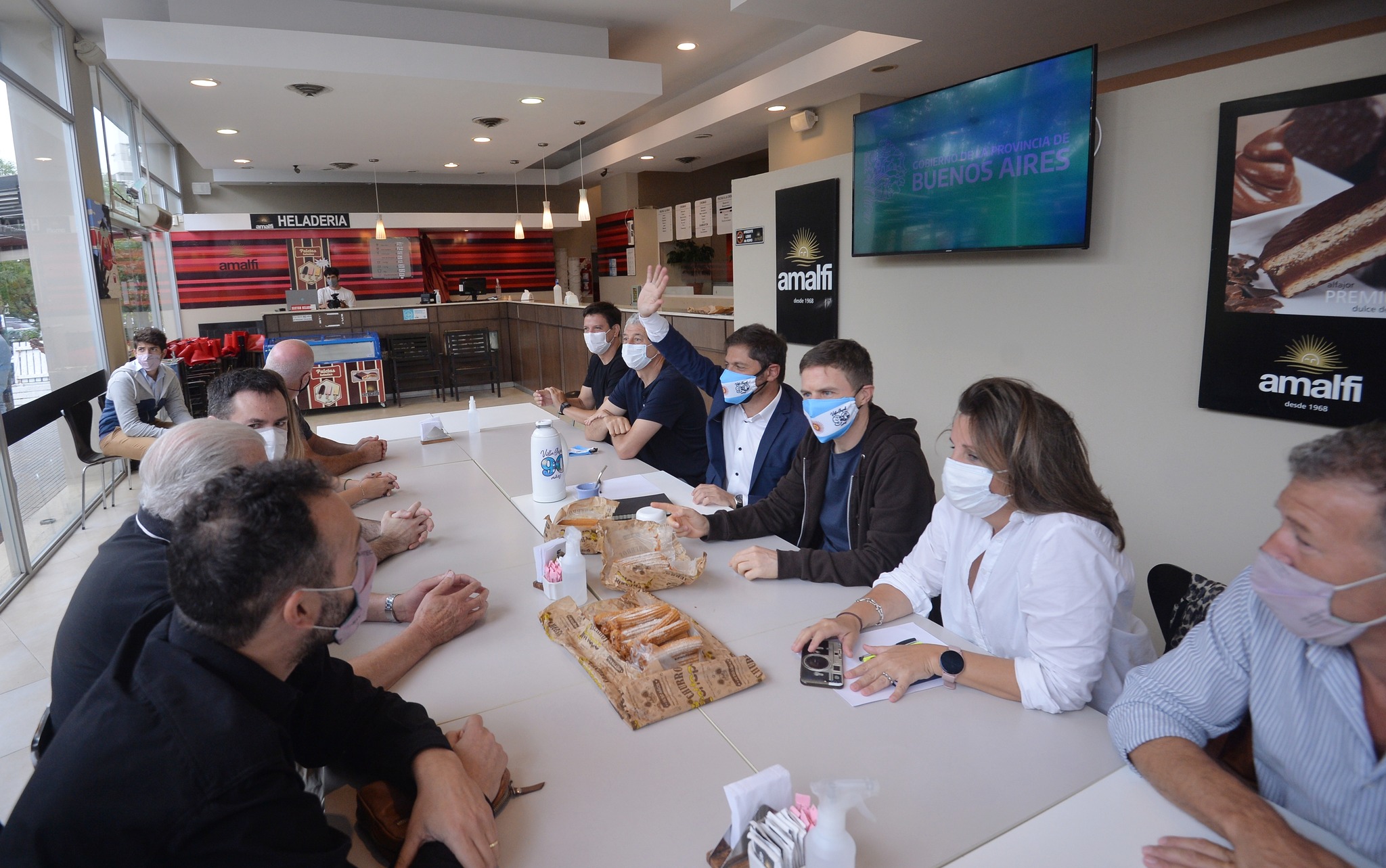 Por la mañana, el Gobernador visitó la cafetería Alfajores Amalfi en Villa Gesell, donde conversó con sus dueños y con representantes gastronómicos y hoteleros. A continuación, recorrió distintos locales de la Avenida 3, donde dialogó con comerciantes sobre los resultados de la primera quincena de enero y la implementación de programas de descuentos y promociones que ofrece la billetera virtual del Banco Provincia, Cuenta DNI.