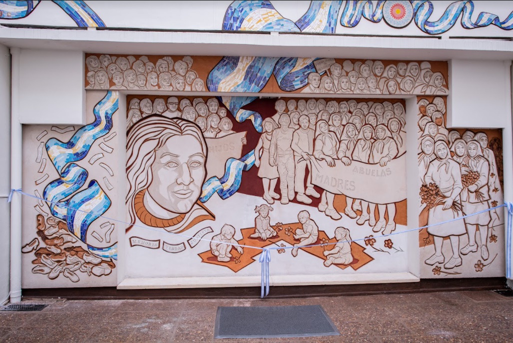 A continuación, Kicillof inauguró el mural “Eternas Flores por la Memoria”, creado por la artista María Cristina Terzaghi y su colaborador, Fernando Arrizurieta, en uno de los patios internos de la Casa de Gobierno, con el objeto de reivindicar la memoria de los 30 mil desaparecidos y desaparecidas por la última Dictadura cívico militar.