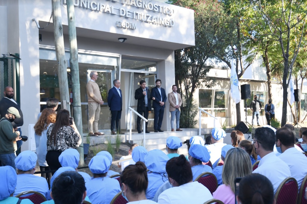 El gobernador de la provincia de Buenos Aires, Axel Kicillof, encabezó esta tarde el acto de inauguración de un Centro de Diagnóstico Municipal (CeDiM) y recorrió el avance de las obras de una clínica veterinaria en el municipio de Ituzaingó. Fue junto al ministro de Salud, Nicolás Kreplak; el intendente Alberto Descalzo; el diputado nacional Daniel Gollan; y el jefe de Gabinete local, Pablo Descalzo.