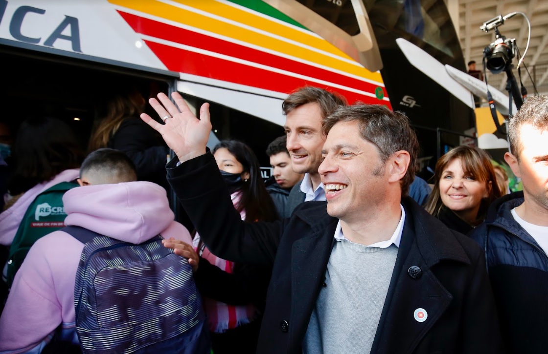 El gobernador de la provincia de Buenos Aires, Axel Kicillof, asistió esta mañana a la despedida de cerca de 300 estudiantes de escuelas de Merlo que viajan a la ciudad de Mar del Plata en el marco del programa Viaje de Fin de Curso. Fue en la terminal de ómnibus de Morón, junto al ministro de Producción, Ciencia e Innovación Tecnológica, Augusto Costa; y el intendente local, Lucas Ghi.
