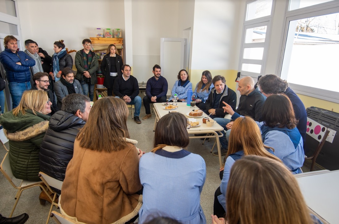 Además, Kicllof visitó junto al director general de Cultura y Educación, Alberto Sileoni, el Jardín de Infantes N°904 “Remedios de Escalada”, donde a partir de una inversión de 25 millones de pesos se ampliaron las instalaciones. Ya se construyeron tres aulas; un SUM; sala de multimedios; se extendió la sala de música; y se refaccionó el espacio para reuniones. Las obras culminarán con la instalación del sistema de gas, que se encuentra en ejecución.
