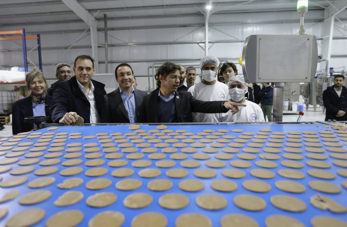Más tarde, el gobernador Axel Kicillof se trasladó hacia el Parque Industrial y Tecnológico (PITEC), donde participó de la inauguración de la fábrica de Togi S.A, junto a su presidente, Leonardo Cataldo, y los directivos Juan Stranges y Claudia Retamar. La empresa, que se dedica a la producción de galletitas, alfajores y chocolates, invirtió 3 millones de dólares para instalarse en un predio de más de 5 mil metros cuadrados.