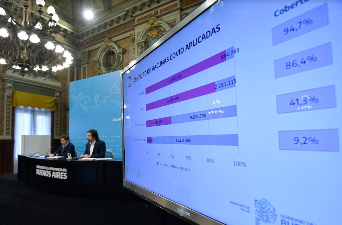 Por último, Kicillof anunció que a partir de la primera quincena de agosto se aplicarán también vacunas de refuerzo para chicos y chicas de entre 3 y 4 años que hayan completado sus esquemas hace al menos cuatro meses. “Este refuerzo será con el método de vacuna libre, gratuita y federal, para todos y en todas las postas de vacunación de la provincia de Buenos Aires”, dijo.