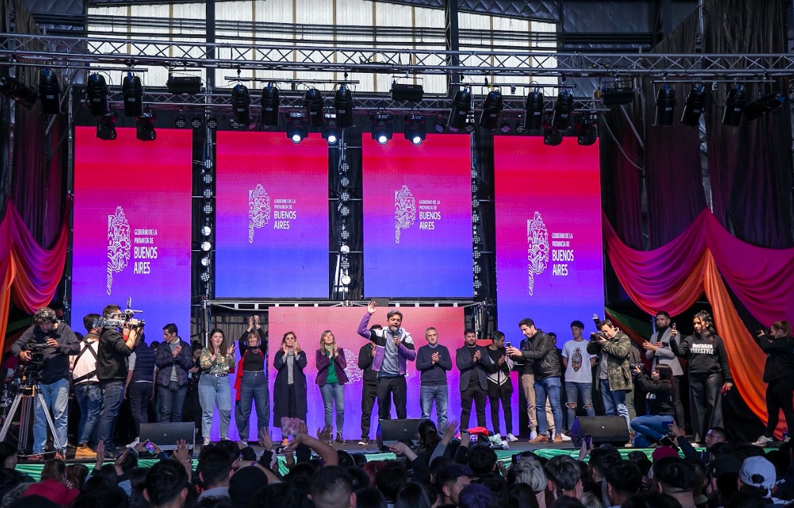 El gobernador de la provincia de Buenos Aires, Axel Kicillof, participó esta tarde en La Matanza de un festival en el que se celebró el Día Internacional de la Juventud junto a más de seis mil estudiantes del distrito que realizarán sus viajes de egresados a través del programa “Viaje de Fin de Curso”. Fue en el predio deportivo Juan Domingo Perón, con la participación de la ministra de Gobierno, Cristina Álvarez Rodríguez; el ministro de Desarrollo de la Comunidad, Andrés Larroque; el intendente local, Fernando Espinoza; y el presidente del Centro de Estudiantes de la Escuela Secundaria 123 de González Catán, Francisco González.