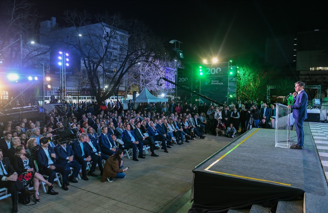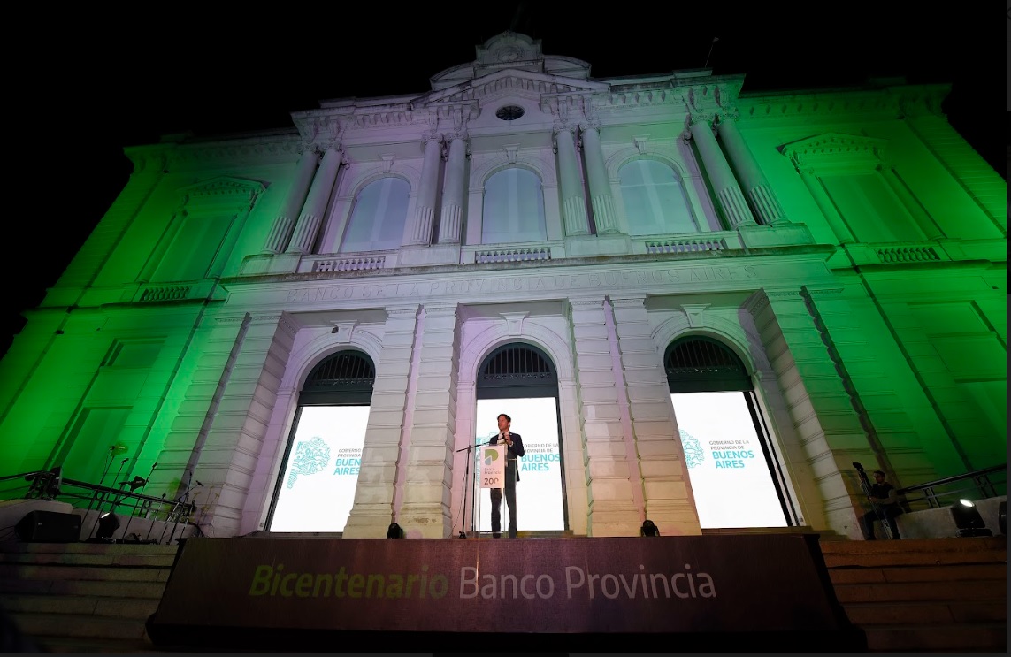 El acto cerró con una proyección audiovisual sobre la fachada del histórico edificio del Banco Provincia, que fue proyectado por los arquitectos Juan Buschiazzo y Luis Viglioneque. Allí se recorrieron los principales hitos del Banco a través de los tres siglos que atraviesa su historia, tras lo cual hubo un espectáculo musical a cargo de La Bomba de Tiempo.
