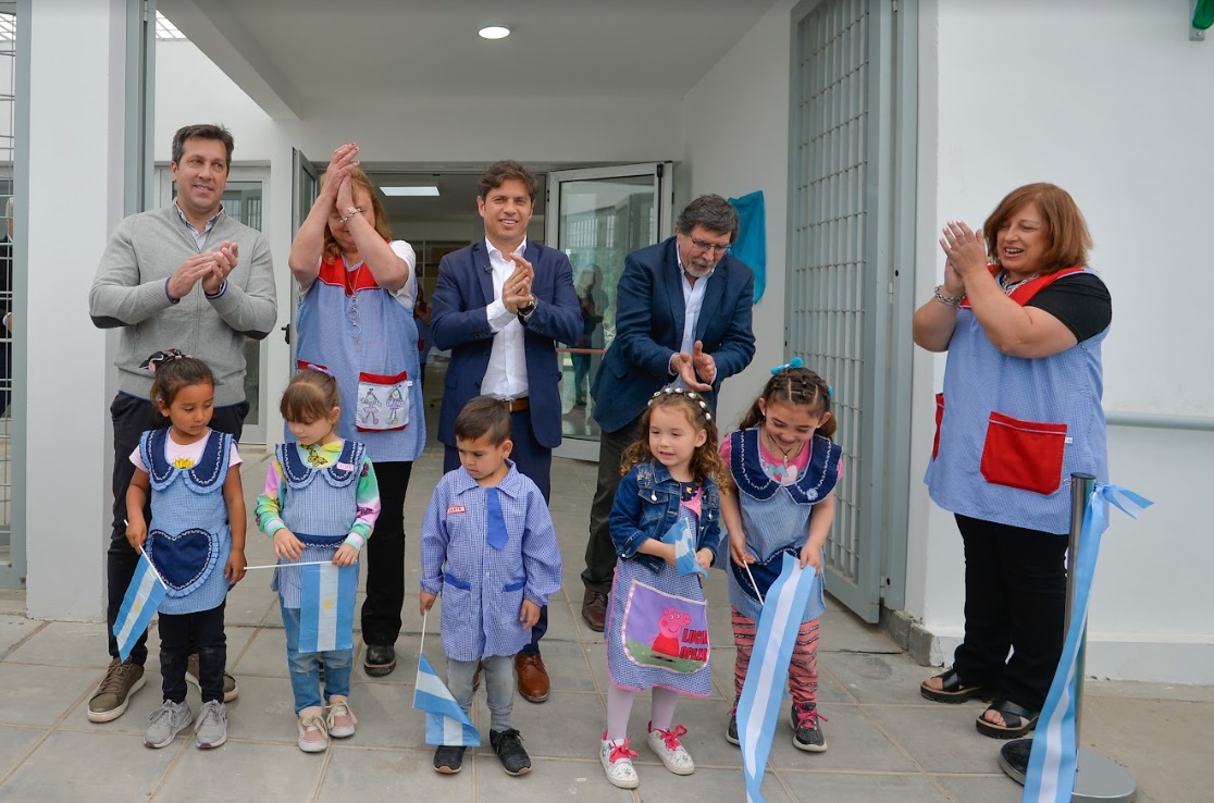 El gobernador de la provincia de Buenos Aires, Axel Kicillof, encabezó el acto de inauguración del edificio del Jardín de Infantes N° 908 en la localidad de Quequén, Necochea, junto al director general de Cultura y Educación, Alberto Sileoni; el intendente local, Arturo Rojas; y la directora de la institución, Graciela Toftum. Se trata del edificio N° 112 construido en el marco del programa Escuelas a la Obra.
