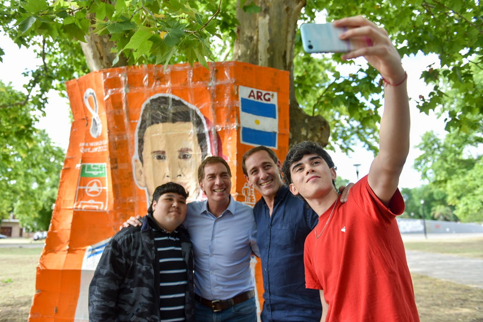 El itinerario de Santilli por la capital de la Provincia incluyó un encuentro con vecinos en Plaza Belgrano; una merienda en el café ubicado en la Plaza Islas Malvinas y una reunión con Franco, un 'youtuber' local que armó una figurita gigante de Lionel Messi.