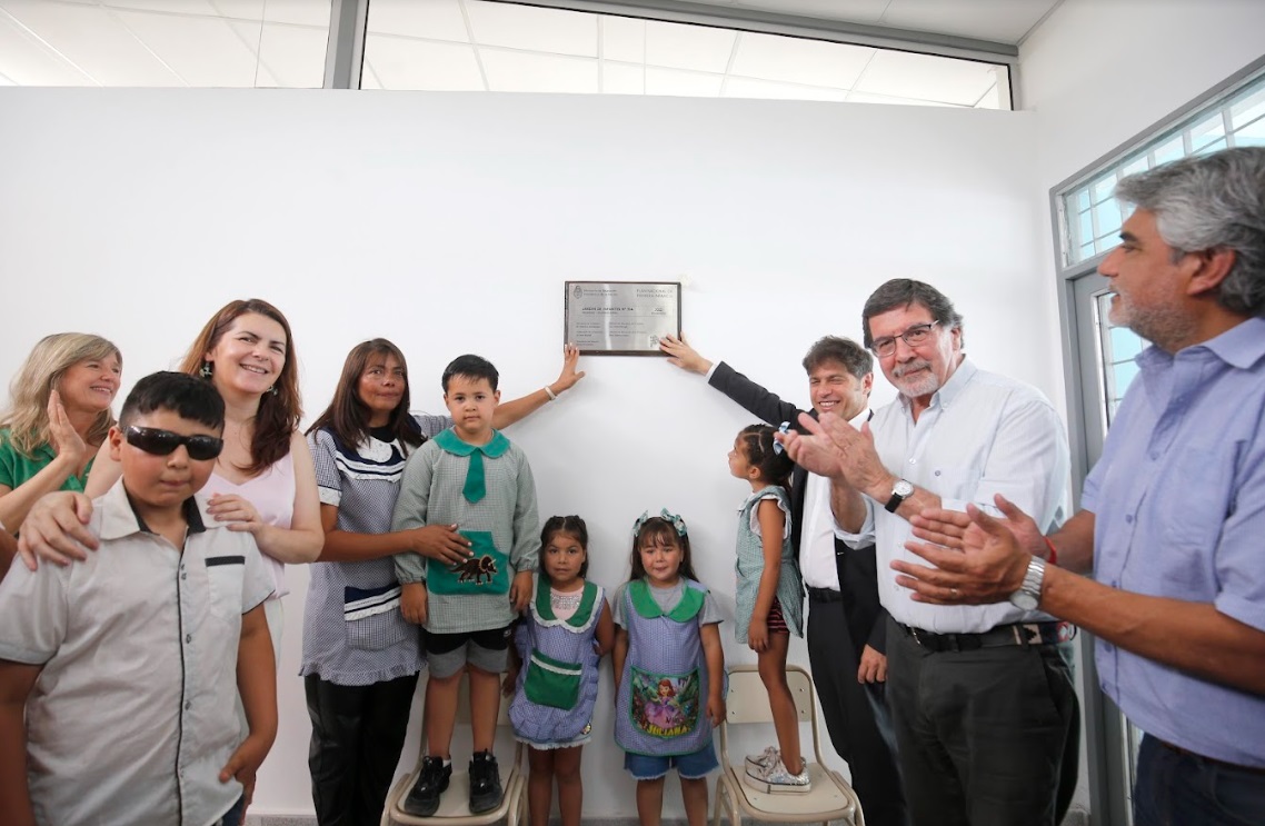 En ese marco, Kicillof destacó que “no pensamos los jardines de infantes como un espacio al que únicamente se viene a jugar, sino como un ámbito de educación inicial al que los chicos y las chicas también vienen a aprender”. “Todos los bonaerenses tienen derecho a la educación desde los primeros años: no importa dónde vivan, merecen además edificios escolares dignos y de calidad”, agregó.