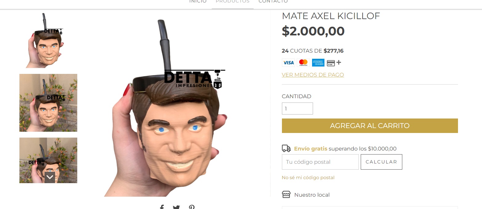 La página en cuestión se llama “Detta Impresiones” y, ofrece a través de su web, el mate en 24 cuotas de $ 277,16. Si se paga al contado, el precio es de 2 mil pesos, aunque hay que agregarle el valor del envío.