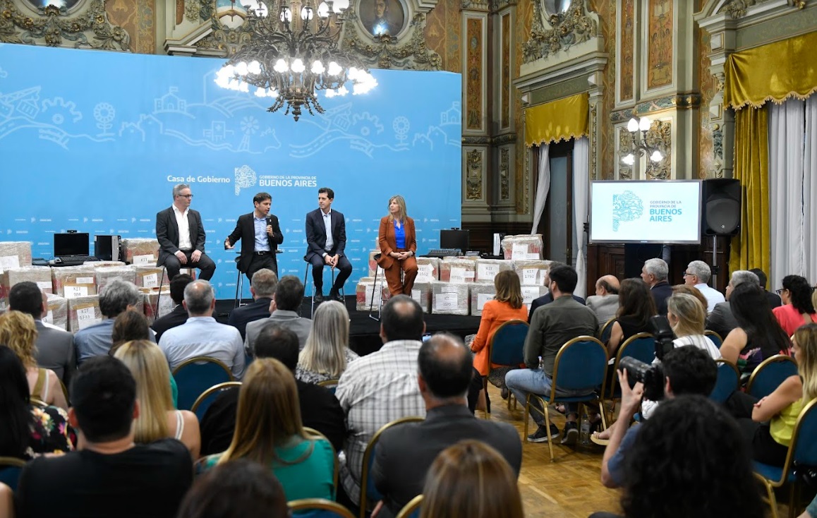 El gobernador de la provincia de Buenos Aires, Axel Kicillof, encabezó esta tarde un acto en el que se anunció la entrega de 498 kits tecnológicos destinados a agilizar los trámites en distintas delegaciones del Registro Provincial de las Personas, junto al ministro de Interior, Eduardo de Pedro; la ministra de Gobierno bonaerense, Cristina Álvarez Rodríguez; y el titular del Registro Nacional de las Personas (RENAPER), Santiago Rodríguez.