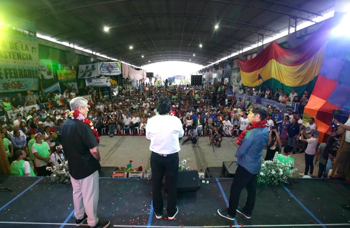 El gobernador de la provincia de Buenos Aires, Axel Kicillof, participó esta tarde en Avellaneda del acto de celebración por el Día del Estado Plurinacional de Bolivia, junto al expresidente boliviano Evo Morales y el intendente local, Jorge Ferraresi.