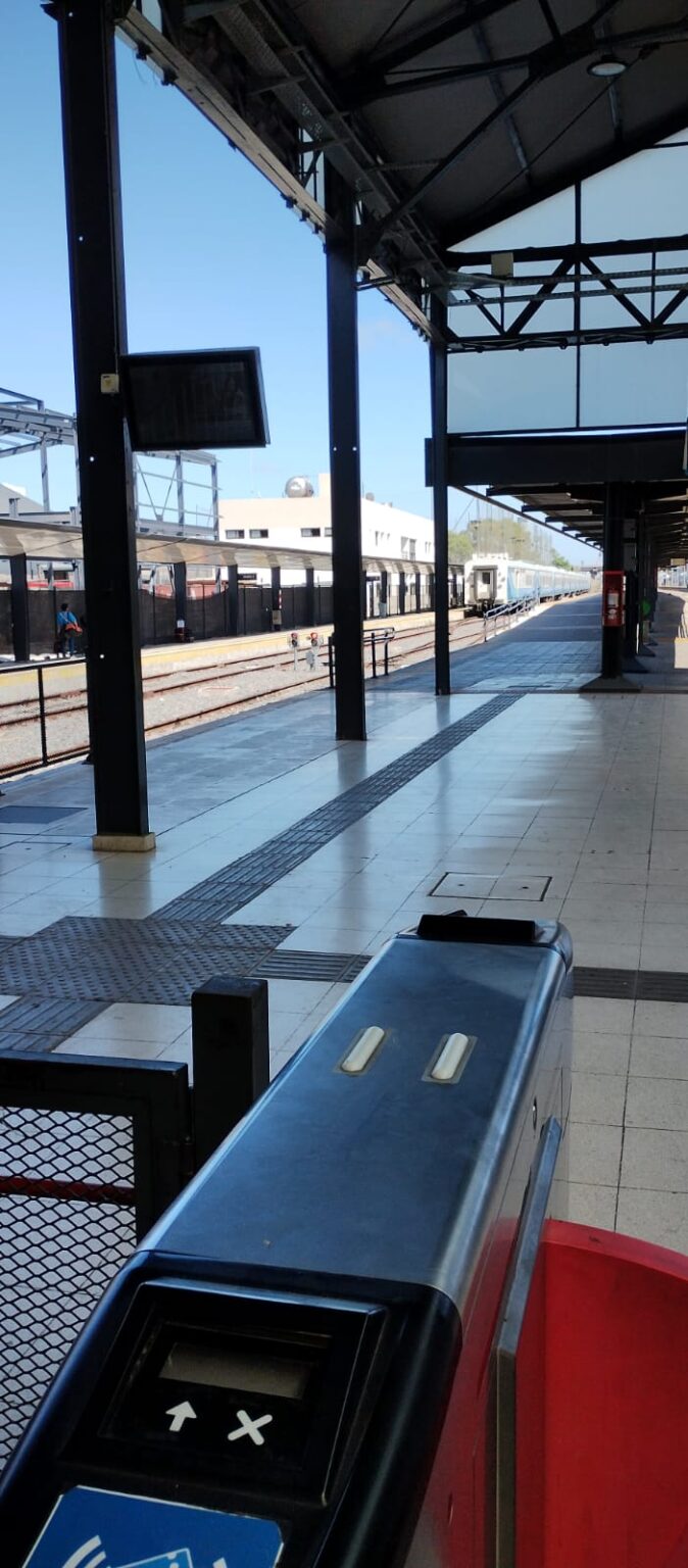Una hora antes de la salida del tren la puerta se abrió para el alivio de las personas que esperaban, bajo los rayos del sol, poder ingresar al galpón del pre embarque. En la puerta dos empleados de Ferrocarriles Argentinos iban escaneando pasajes físicos y digitales.