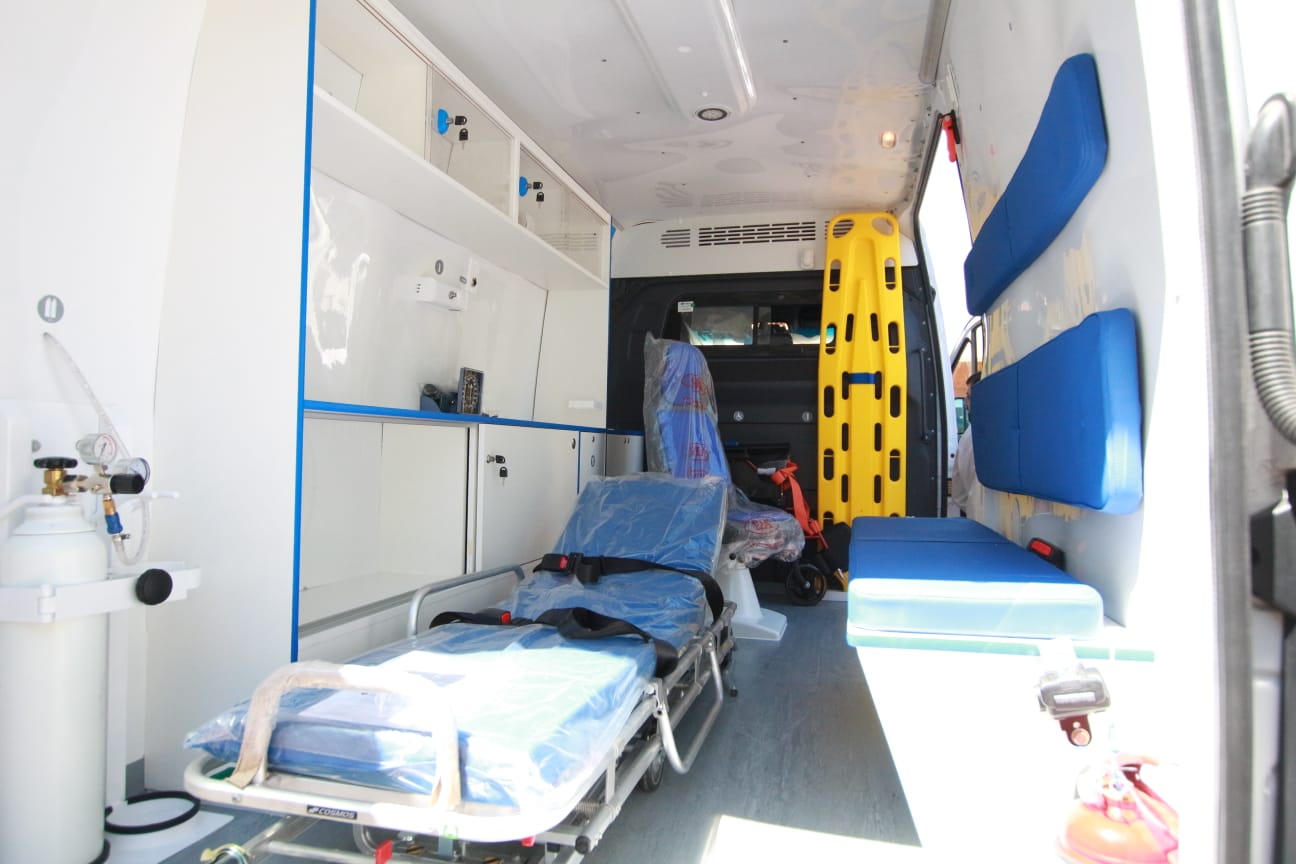 Las ambulancias entregadas hoy marca Mercedes Benz, modelo Sprinter 316, año 2022, fueron adaptadas para la realización de traslados de baja y mediana complejidad y demandaron un costo aproximado de más de 12 millones de pesos. Están equipadas con: camilla con tabla, un tubo de oxígeno ultraliviano de 415 lts de trasporte, y otro de oxígeno central de 1 mts. cúbico, con manómetro ultraliviano y central, silla de ruedas plegable, tensiómetro, estetoscopio, flumiter con frasco, un kit de primeros auxilios, y otro de herramientas.
