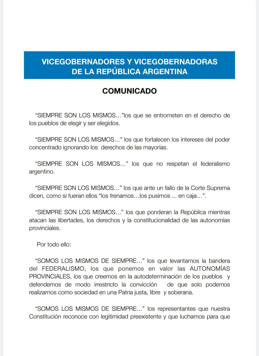 “SIEMPRE SON LOS MISMOS…” los que ponderan la República mientras atacan las libertades, los derechos y la constitucionalidad de las autonomías provinciales.