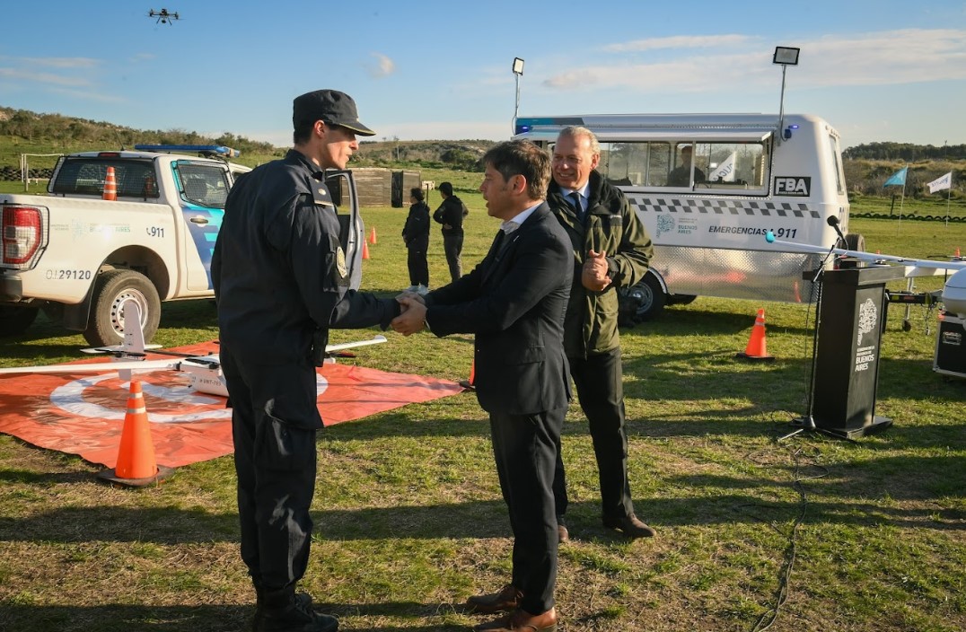 El gobernador de la provincia de Buenos Aires, Axel Kicillof, encabezó este martes junto al ministro de Seguridad, Sergio Berni, el acto de presentación de 10 drones adquiridos para fortalecer las tareas de patrullaje en zonas rurales. Fue en la Escuela de Policía “Juan Vucetich” de Villa Fortabat, en Olavarría, con la participación del titular de la delegación local de ANSES, Maximiliano Wesner, y el diputado bonaerense César Valicenti.