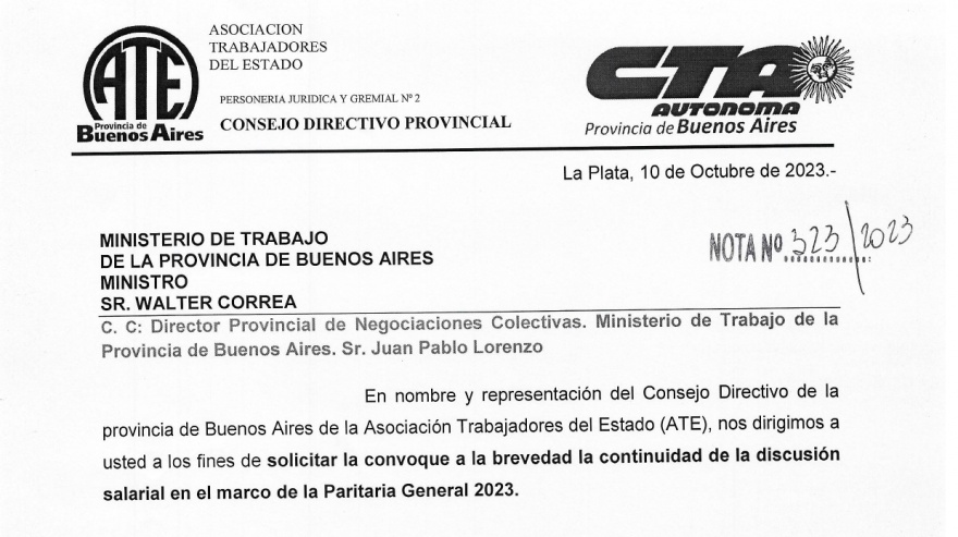 La carta expresa que “entendemos indispensable que podamos continuar trabajando en conjunto, entre el Estado provincial y los sindicatos, para sostener una paritaria abierta y permanente que nos permita actualizar los haberes de las y los estatales bonaerenses con el objeto de garantizar que los salarios de los y las estatales no pierdan a manos de la inflación, pero, además, logremos recuperar poder adquisitivo salarial”.