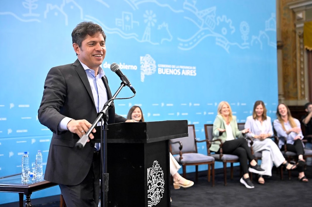 El gobernador de la provincia de Buenos Aires, Axel Kicillof, participó este viernes junto a la vicegobernadora, Verónica Magario, y la ministra de Mujeres y Diversidad, Estela Díaz, del acto por el Día Internacional de las Mujeres Trabajadoras, en el Salón Dorado de la Casa de Gobierno. También estuvieron presentes la jefa de Asesores del Gobernador, Cristina Álvarez Rodríguez; la ministra de Ambiente, Daniela Vilar; la presidenta del Instituto Cultural, Florencia Saintout; y la secretaria general de la Gobernación, Agustina Vila.