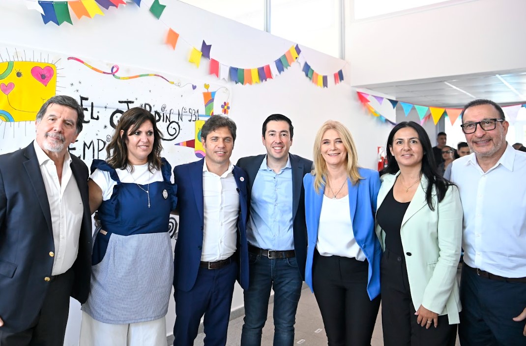 El gobernador de la provincia de Buenos Aires, Axel Kicillof, encabezó este martes la inauguración del Jardín de Infantes N°931 en el municipio de Malvinas Argentinas. Fue junto a la vicegobernadora Verónica Magario; el director general de Cultura y Educación, Alberto Sileoni; el intendente local, Leonardo Nardini; y la directora de la institución, Roxana Di Leo.