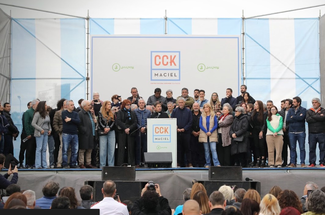 “Hace pocos días leíamos que querían cambiarle el nombre al Centro Cultural Kirchner, lo mismo que hicieron después del golpe del ´55 cuando prohibieron por decreto mencionar a Perón y a Evita”, explicó Kicillof, y agregó: “Si lo hicieran, no serviría de nada porque Néstor vive en el pueblo”.