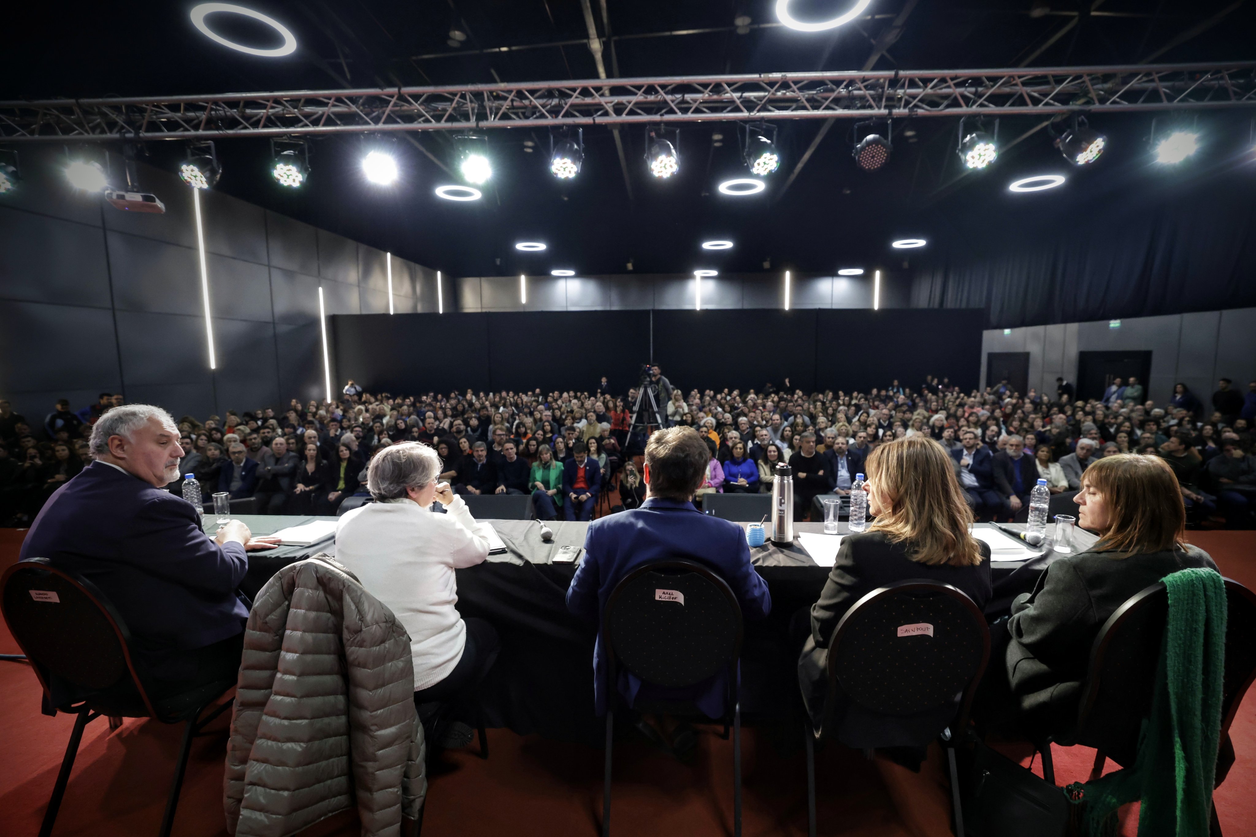 El conversatorio se desarrolló en la sala José Hernández y contó con la participación de la presidenta del Instituto Cultural, Florencia Saintout; las rectoras de la Universidad Nacional de General Sarmiento (UNGS), Flavia Terigi; de la Universidad Nacional de Comahue (UNCOMA), María Beatriz Gentile; y el rector de la Universidad Nacional de Mar del Plata (UNMDP), Alfredo Lazzaretti.