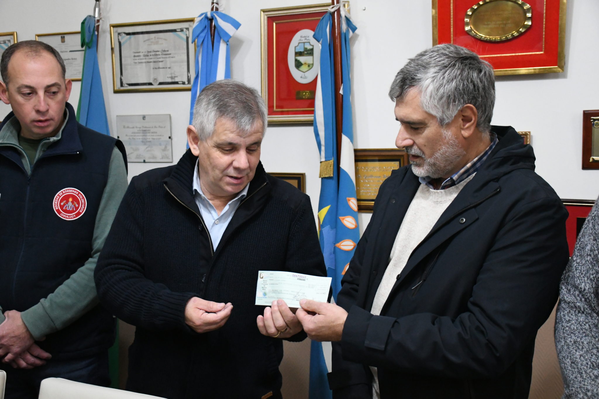 El intendente Guillermo Britos hizo entrega de un cheque de $8.500.000 a los Bomberos Voluntarios de esa ciudad para colaborar con la renovación de los equipos de respiración autónoma.