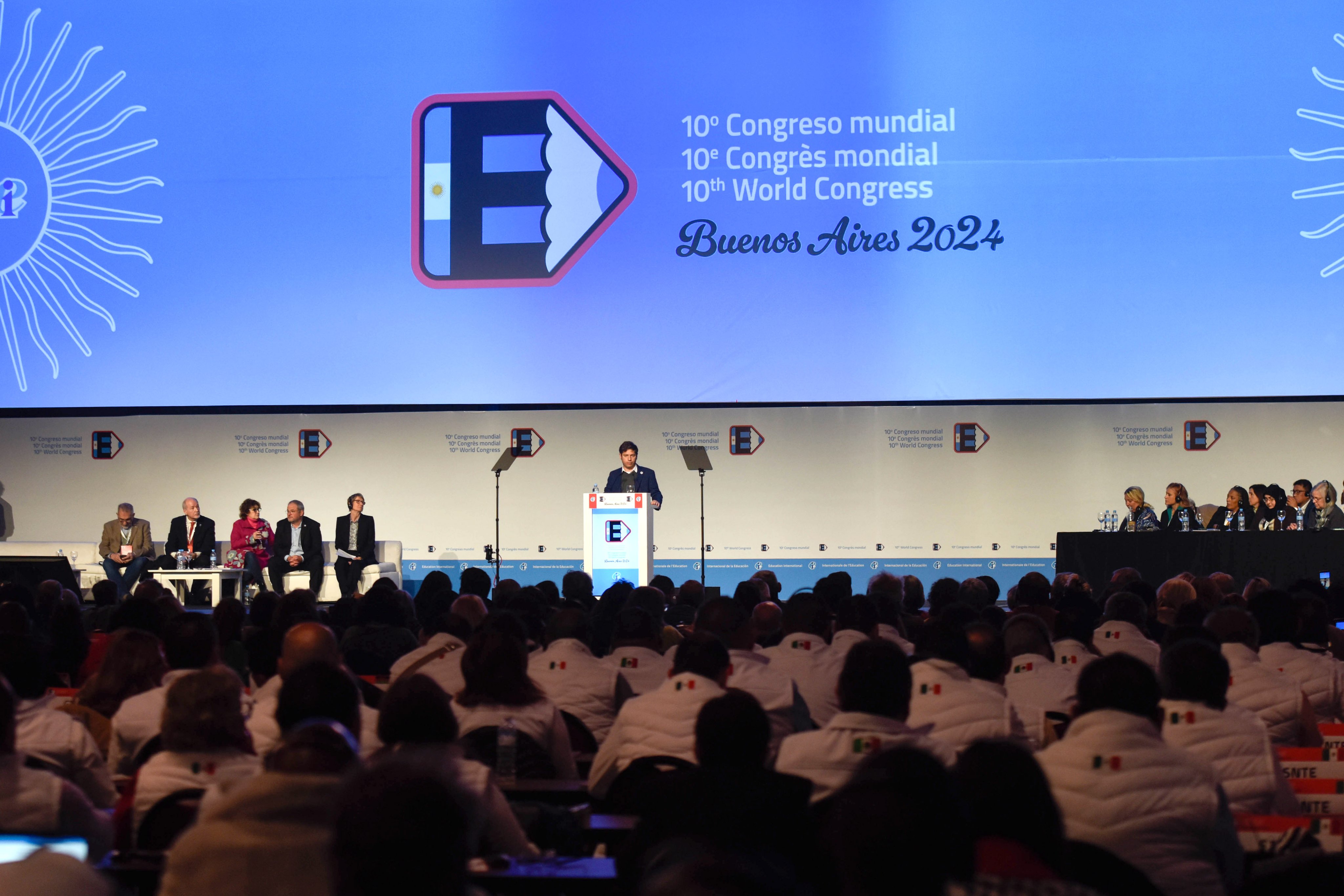 El gobernador de la provincia de Buenos Aires, Axel Kicillof, participó este lunes de la apertura del 10° Congreso Mundial de la Internacional de Educación (IE), junto a la presidenta de la institución, Susan Hopgood, y el secretario general, David Edwards. Fue en el Centro de Convenciones de la Ciudad Autónoma de Buenos Aires, con la presencia de la titular de IE para América Latina, Sonia Alesso; el coordinador de Educación Superior del Comité Regional de la IE para América Latina, Carlos Defeo; y el secretario general de la Confederación de Educadores Argentinos (CEA), Fabián Felman.