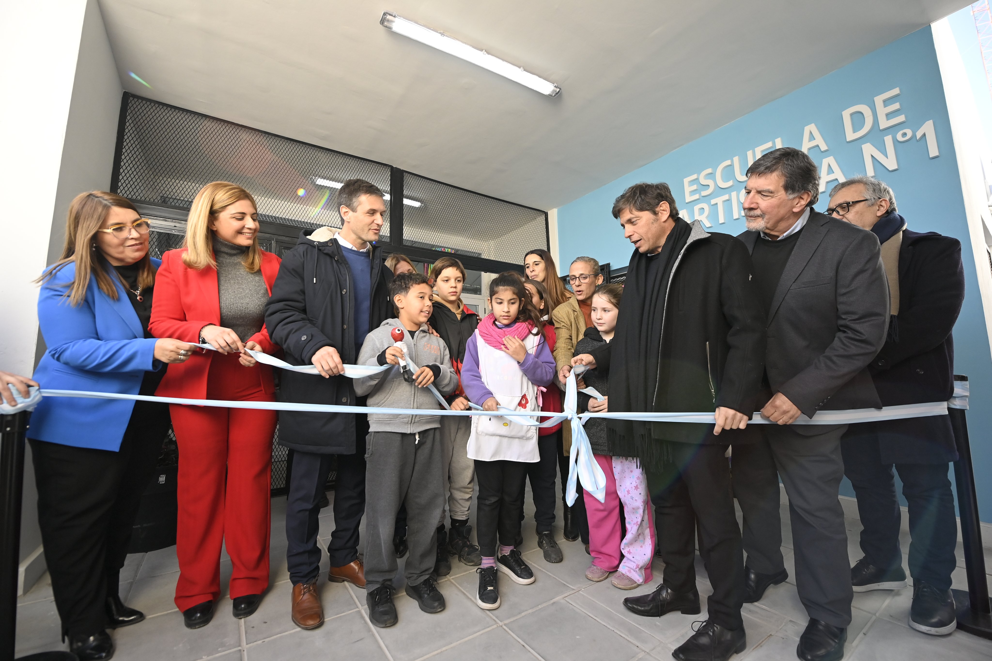 Durante la jornada, Kicillof y el director general de Cultura y Educación, Alberto Sileoni, inauguraron el nuevo edificio de la Escuela de Educación Artística N°1 de Alejando Korn. Tras una inversión de $71 millones, la institución estará ahora en condiciones de duplicar su matrícula.