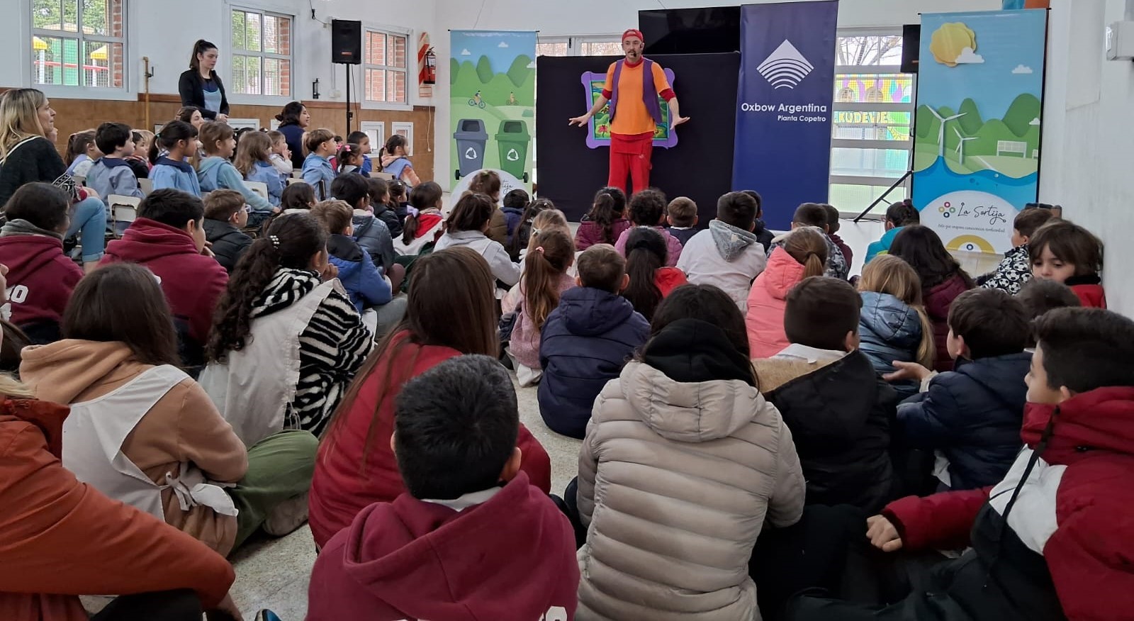 Durante la jornada, 200 alumnos y docentes disfrutaron de la obra de teatro "Eco Walsh" que aborda prácticas sustentables de la vida cotidiana a través de canciones y personajes de María Elena Walsh, con el objetivo de divertir, educar e inspirar conciencia ambiental en los más pequeños y en las familias.