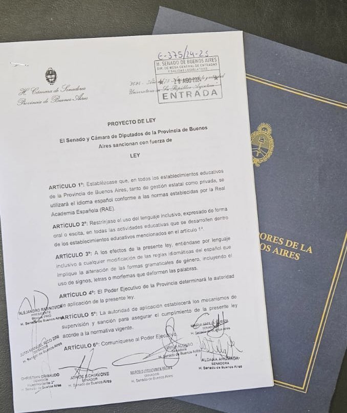 De acuerdo a lo que expone Aldana Ahumada en los considerandos de su articulado, recientemente el Gobierno de Axel Kicillof destinó más de 4 mil millones de pesos en la compra de libros, entre los que se encuentran ejemplares destinados a fomentar el “lenguaje inclusivo” en las escuelas bonaerenses, lo que “generó preocupación sobre la pertinencia” de la medida en un contexto de crisis educativa severa.