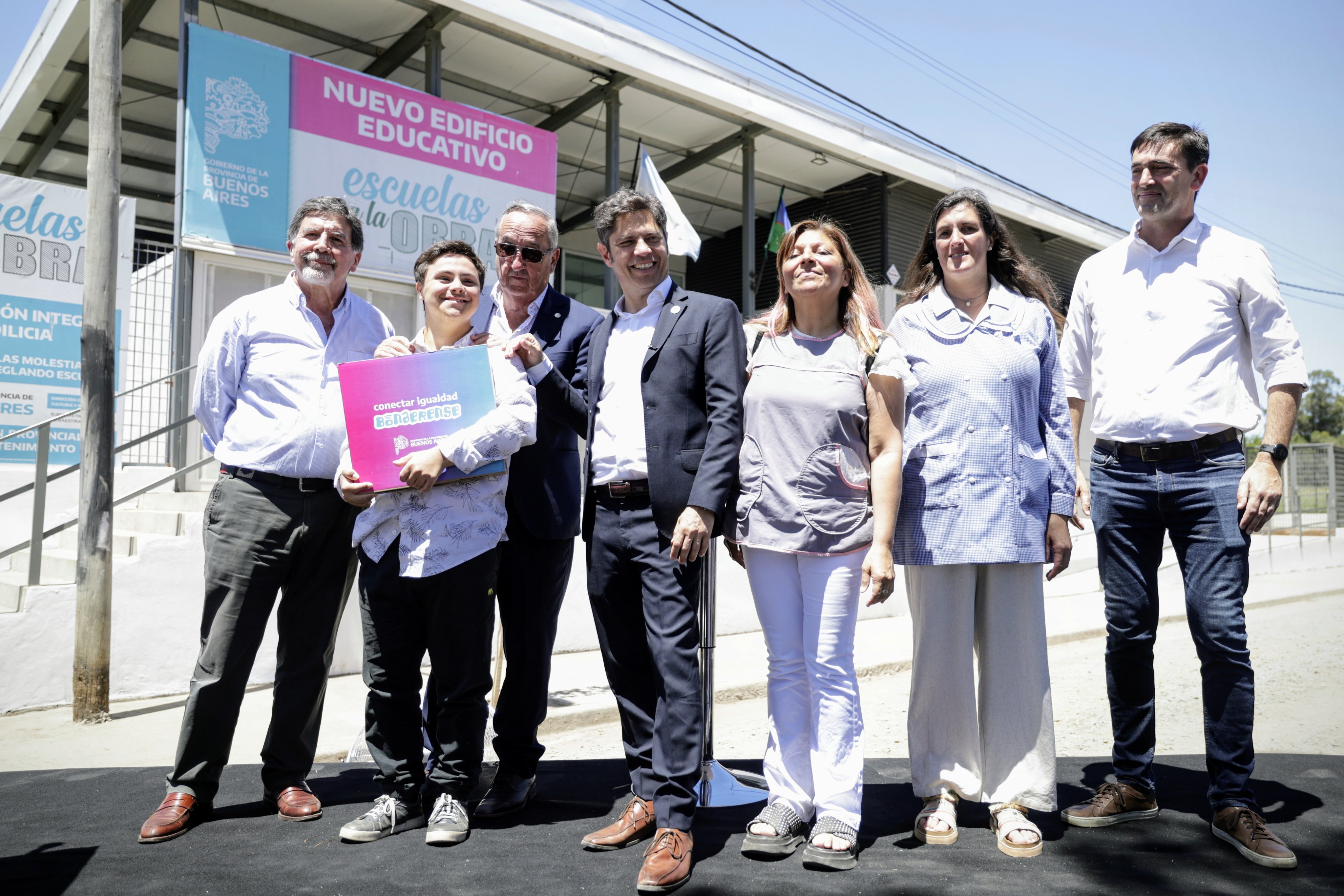 El gobernador de la provincia de Buenos Aires, Axel Kicillof, encabezó este viernes la inauguración del nuevo edificio del Jardín de Infantes Nº 912 en Tandil, donde además distribuyó computadoras del programa Conectar Igualdad Bonaerense. Fue junto al director general de Cultura y Educación, Alberto Sileoni; el intendente local, Miguel Ángel Lunghi; el diputado nacional Rogelio Iparraguirre; y la directora de la institución, Cecilia Eliceguy.