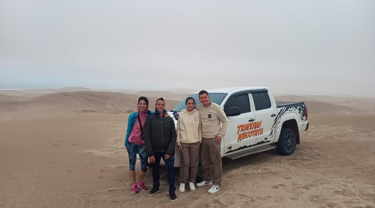 Para finalizar un día perfecto con adrenalina y aventura, Travesías Necotata invita a animarse a la velocidad y diversión en familia: “Realizamos la excursión al gran Médano Blanco. Este se encuentra a 40 kilómetros de la ciudad, vamos por la playa a bordo de nuestra 4x4, pasando por parajes como las Grutas, Punta Negra, Parque Eólico, Punta Florida, Balneario Los Ángeles y Cueva del Tigre”, explicó Claudio Mousseign, a cargo de la excursión.
