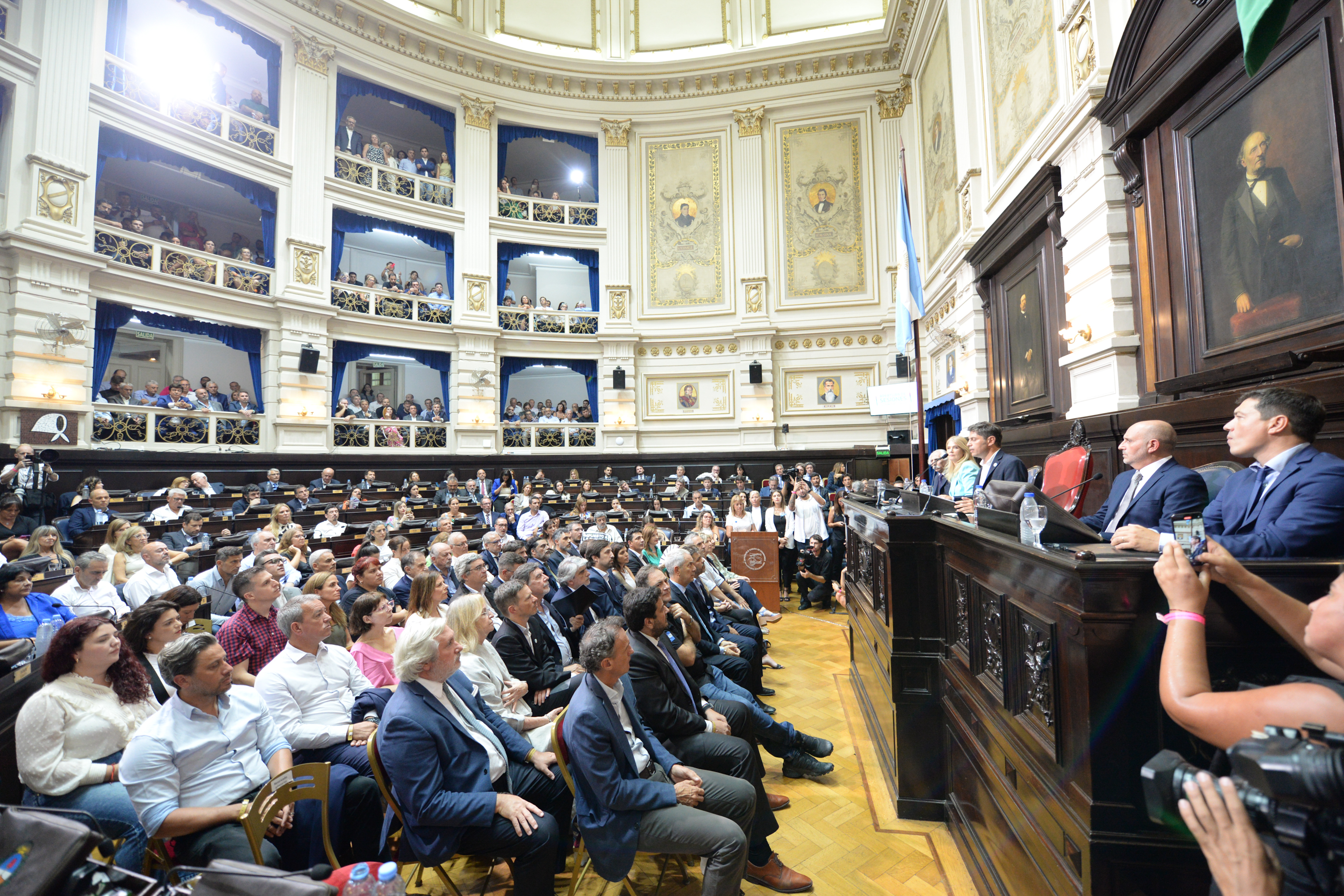 En materia de seguridad, el Gobernador remarcó: “La seguridad no se resuelve con soluciones simplistas ni con discursos de campaña, sino con políticas efectivas y con un Estado presente: con inversión, aplicando de manera inflexible la ley, pero también garantizando una mayor justicia social y más oportunidades de futuro para los jóvenes”. “Destinaremos $170.000 millones para fortalecer la seguridad y la protección de los bonaerenses: sumaremos 800 nuevos patrulleros, crearemos un Fondo Municipal de $70.000 millones para los distritos de más de 70.000 habitantes e instalaremos 15 nuevas bases en los barrios para aumentar nuestra capacidad de protección y prevención”, anunció.