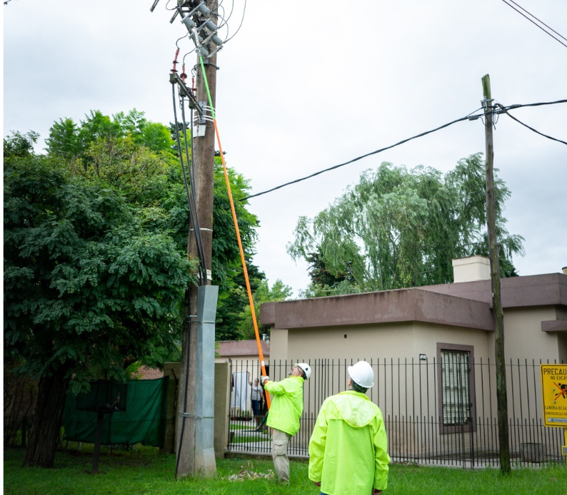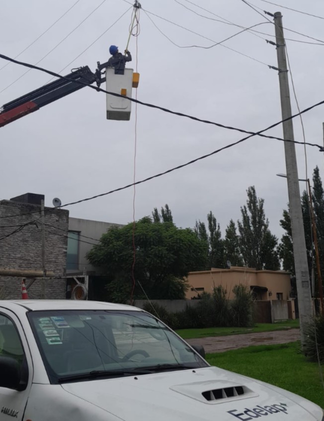 Actualmente el personal continúa trabajando con maquinaria especializada en sectores de difícil acceso por anegamientos para reparar los daños causados por la caída de ramas, árboles, cartelería y otros elementos sobre las instalaciones eléctricas.