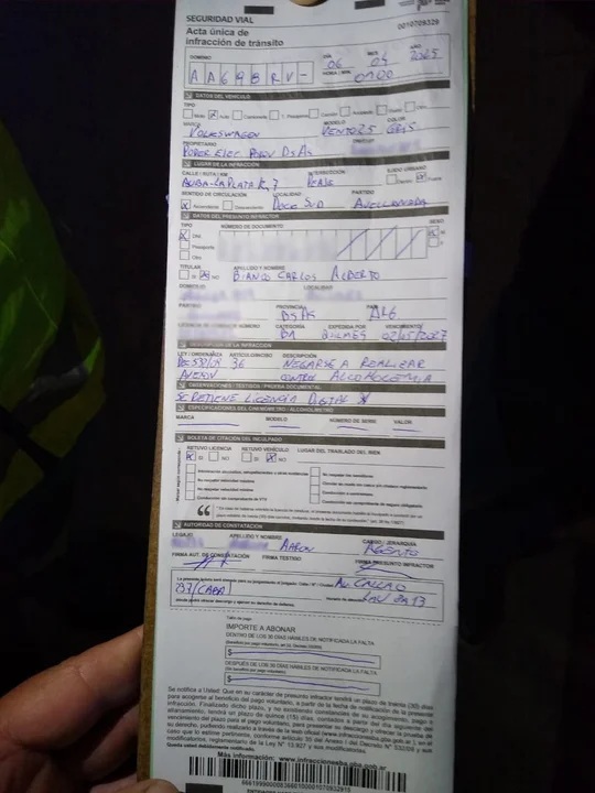 Al negarse al control, se activó el protocolo correspondiente: retención inmediata del registro y del vehículo oficial, y espera obligada en el lugar hasta que alguien lo pasara a buscar.